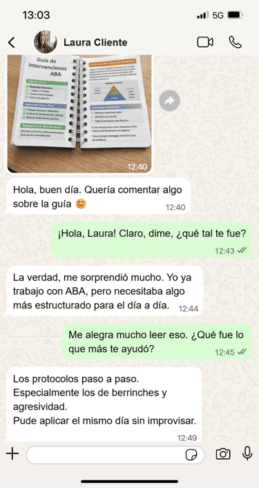 Entonces, el Guía de Intervenciones ABA es el recurso técnico que te falta para tener seguridad en cada intervención.